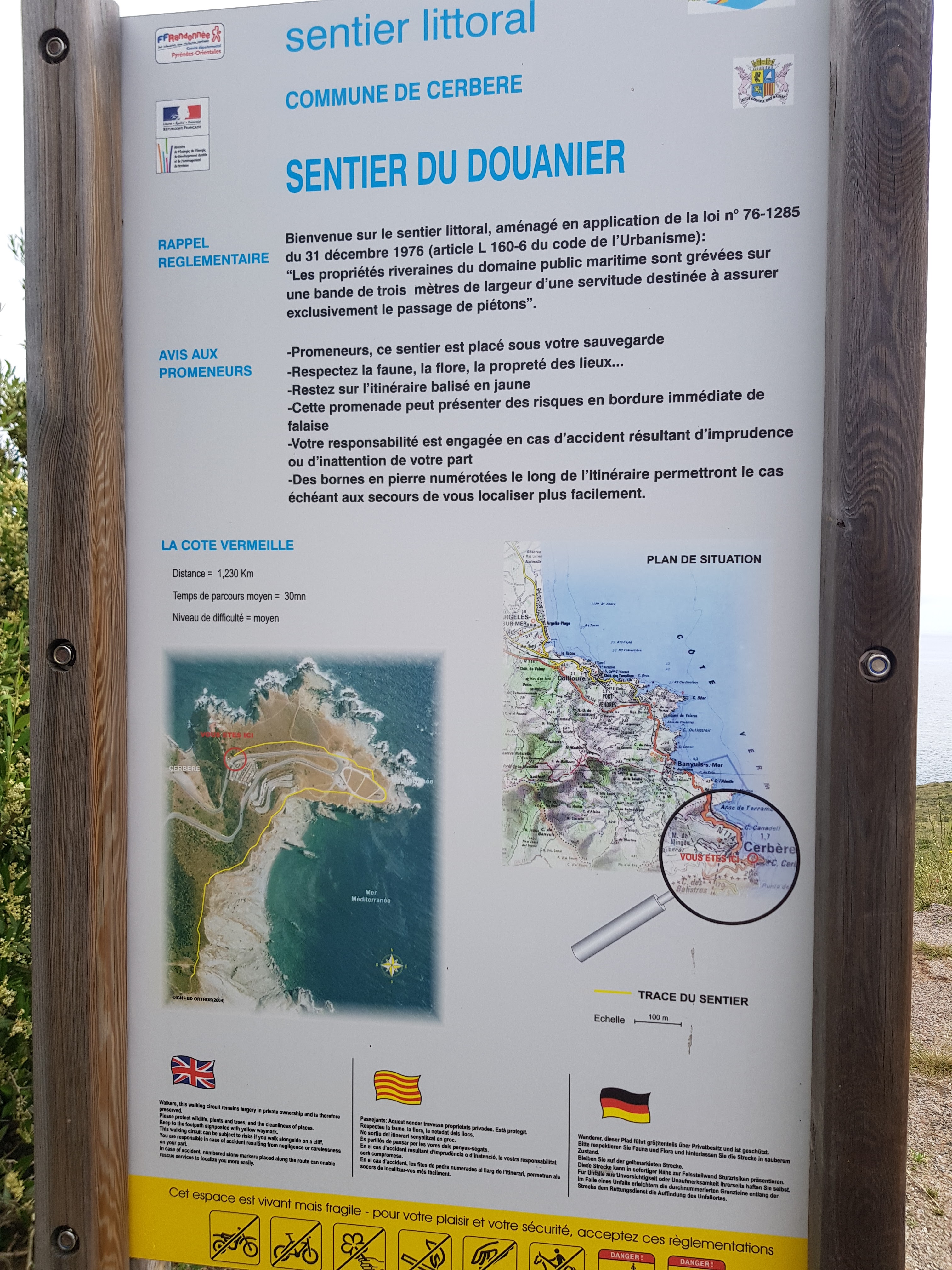 Un petit sentier balisé longe les falaise et amène jusqu'à la frontière