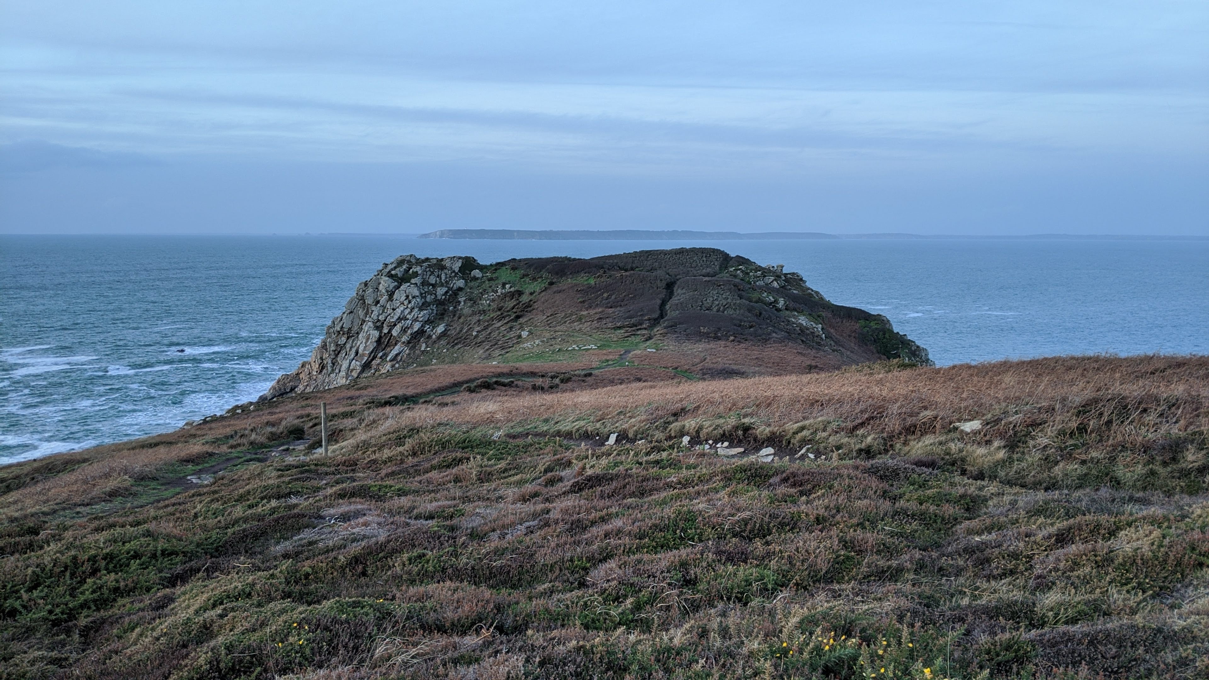 Très jolie vue sur la baie de Douarnenez, jusqu'à l'île Molène par temps clair. On voit encore sur l'éperon les traces de quelques habitations du temps où il était fortifié.