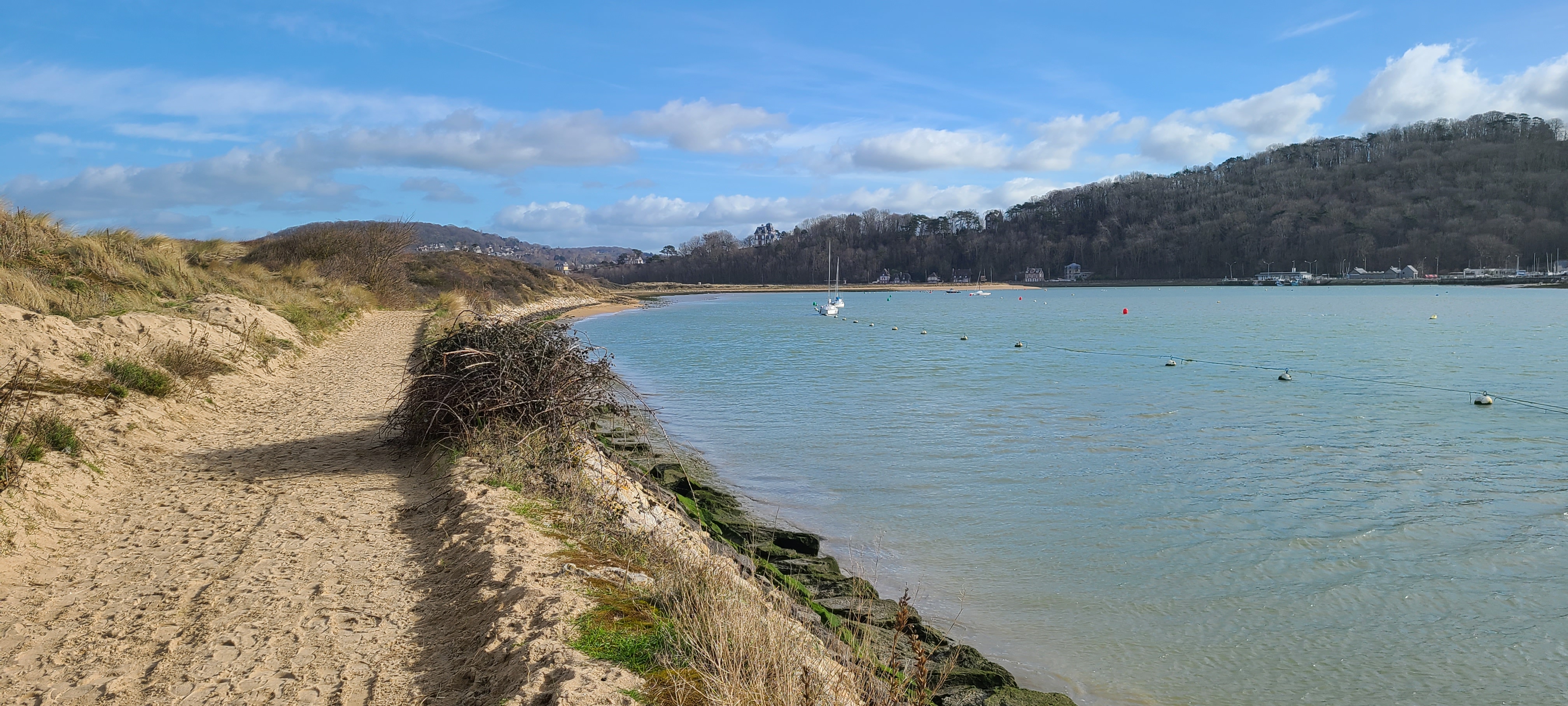 Belle petite marche depuis le bord de mer de Cabourg, en faisant le tour par la pointe, puis le port; puis retour ! Quel calme hors saison ☹️