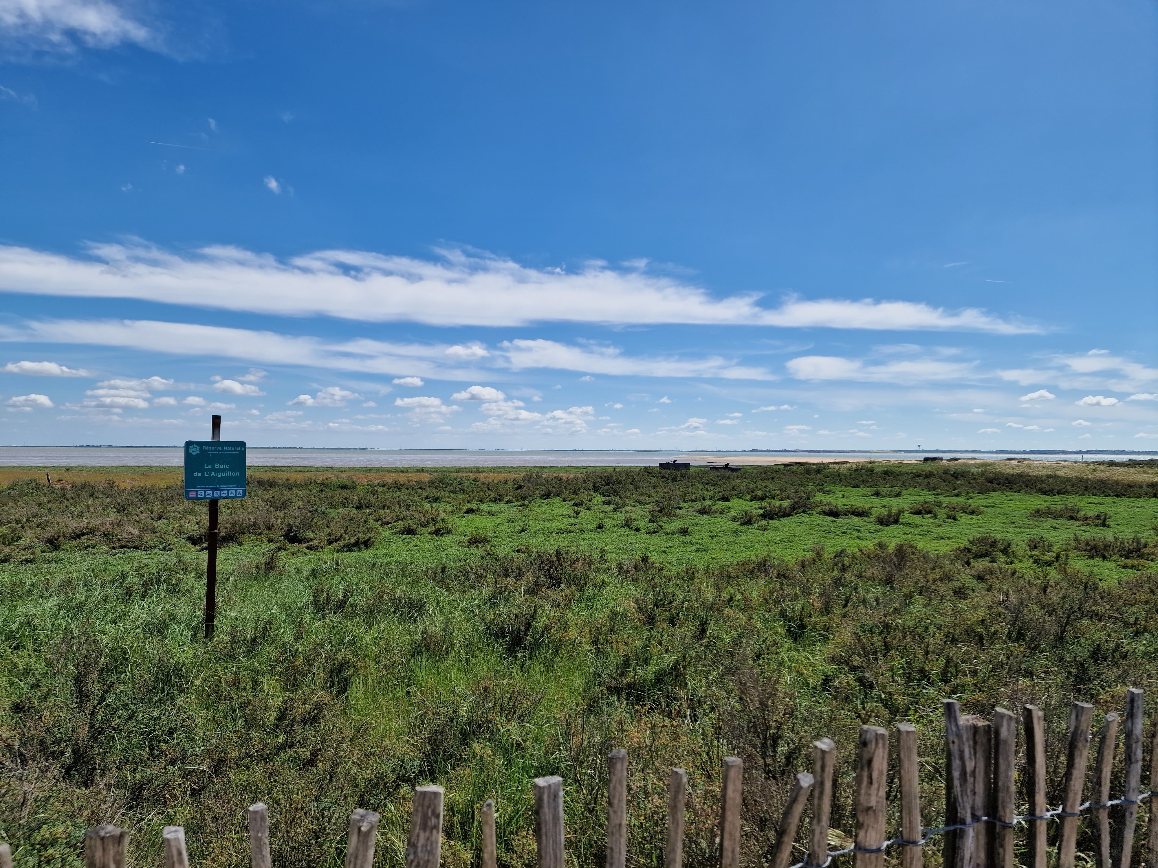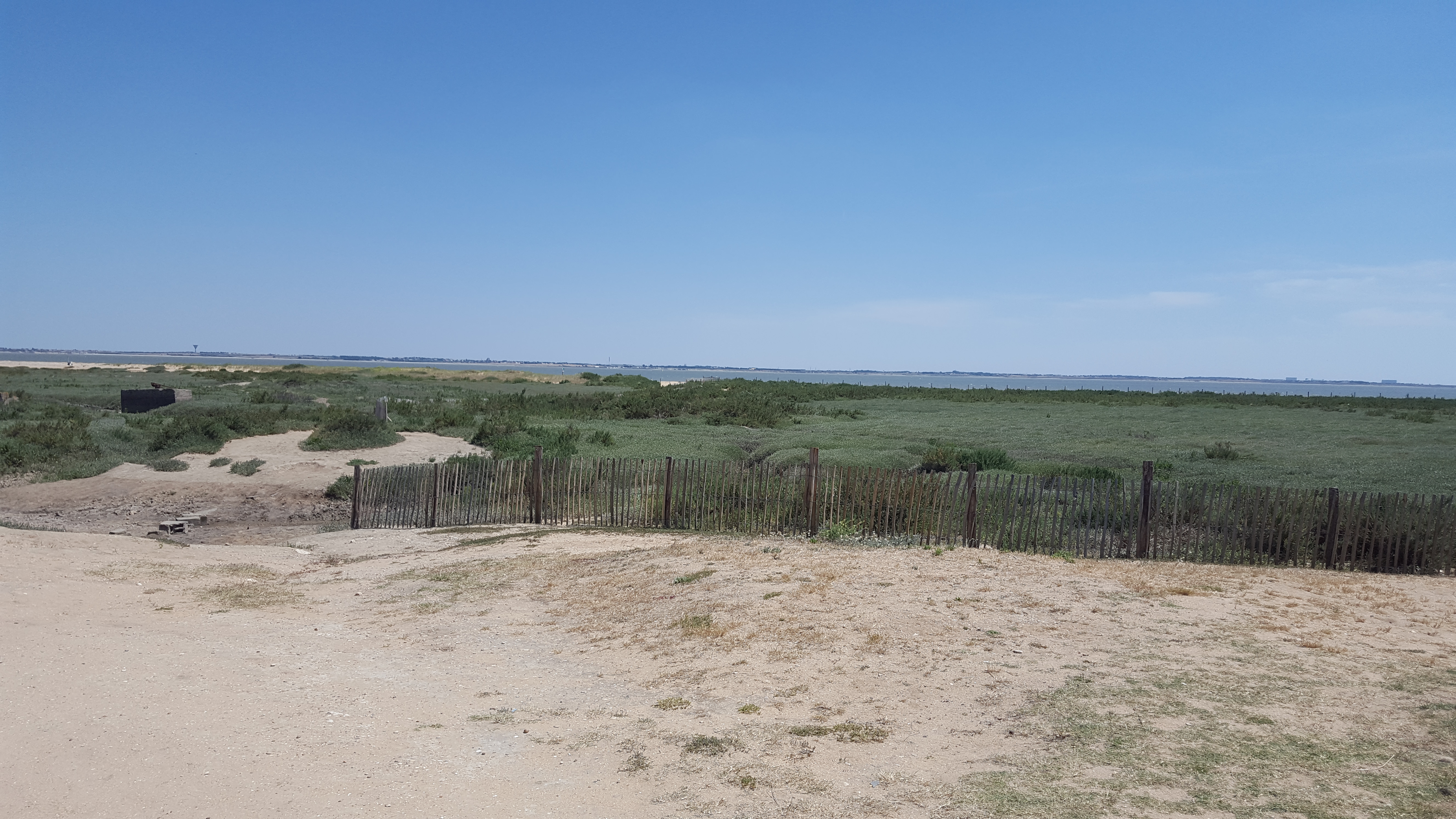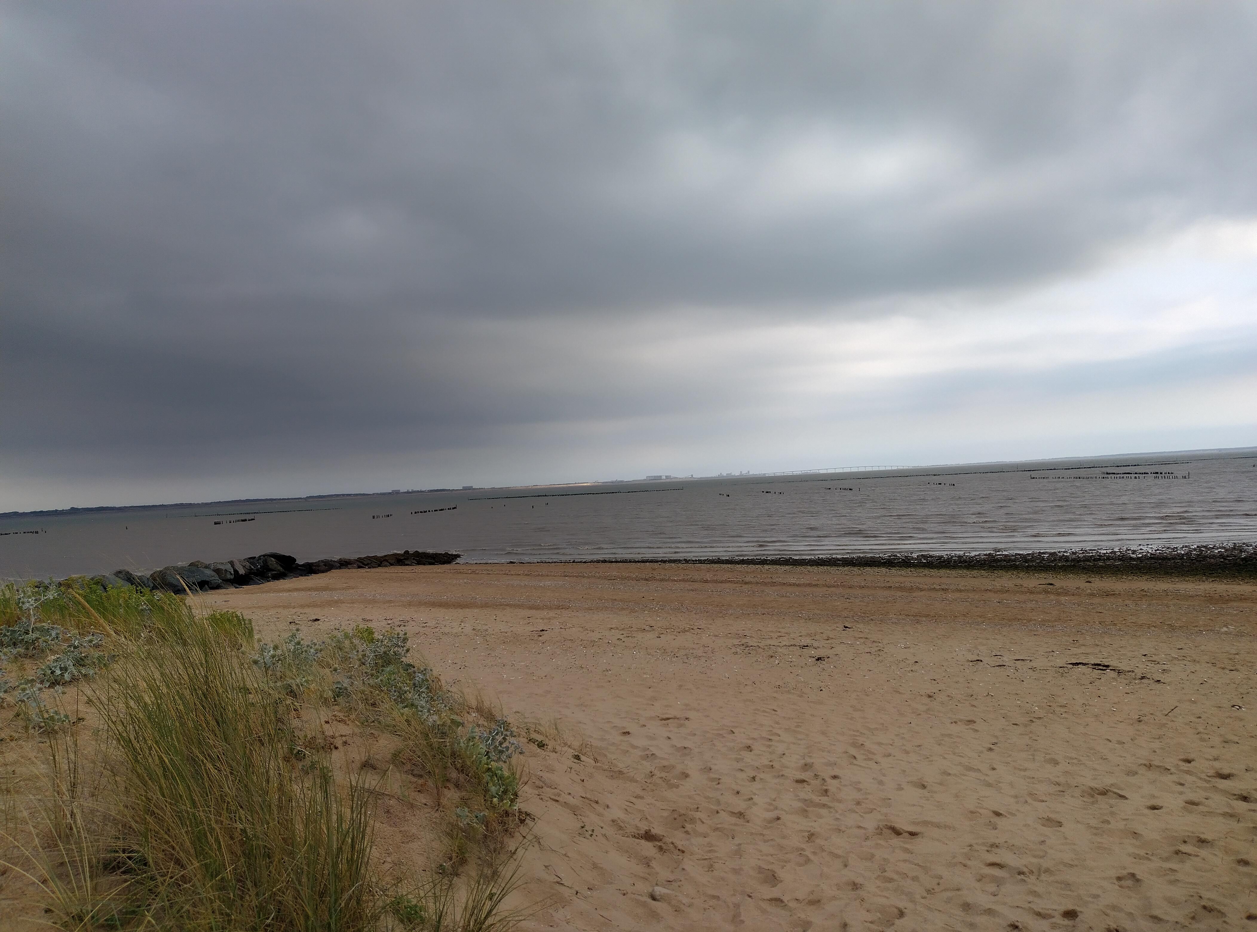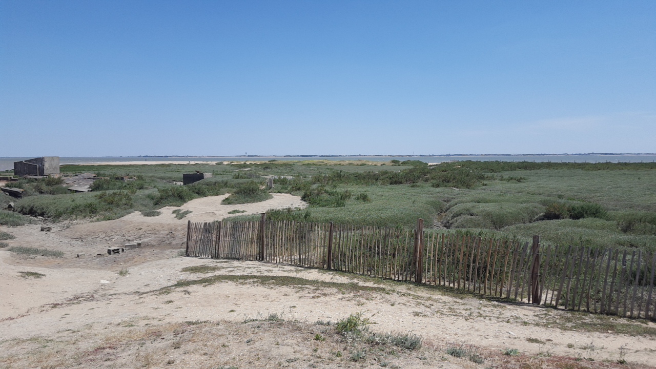 Le bout du monde où presque, plage a perte de vue, vue sur l'île de Ré et la Rochelle par temps clair.