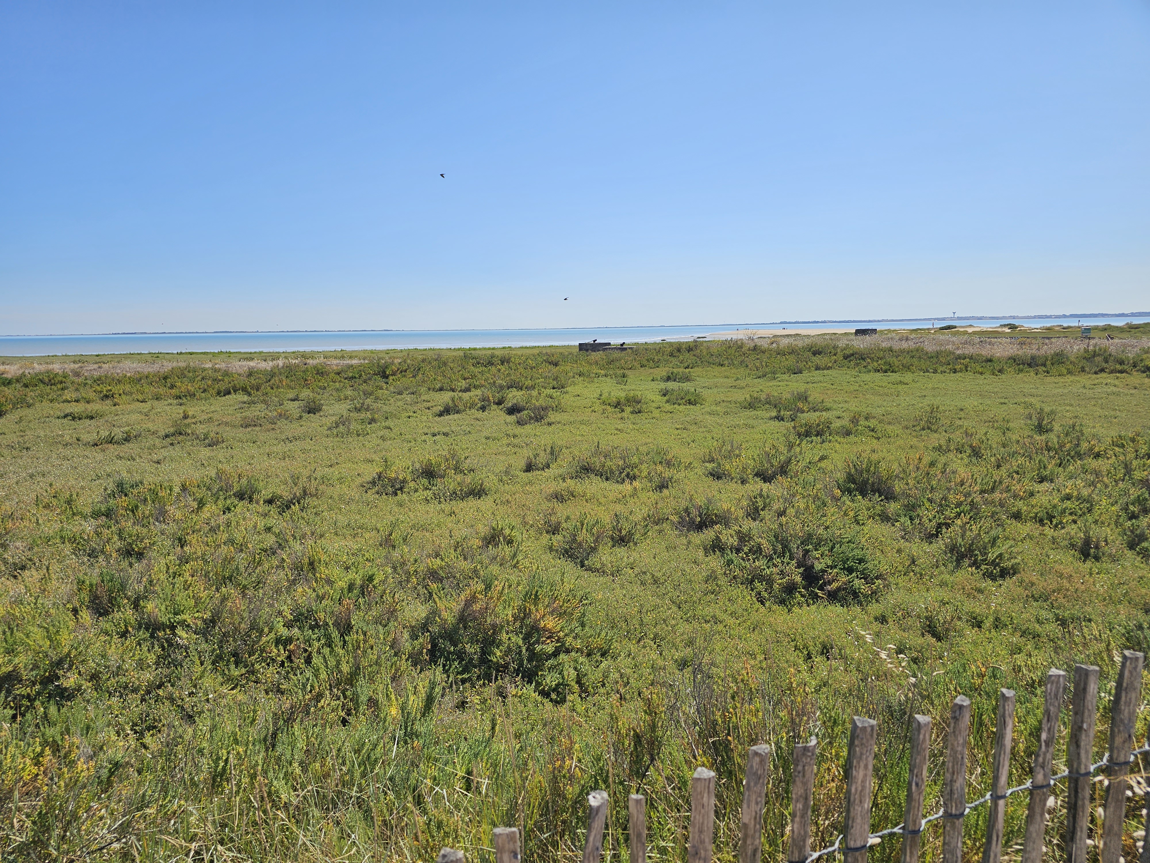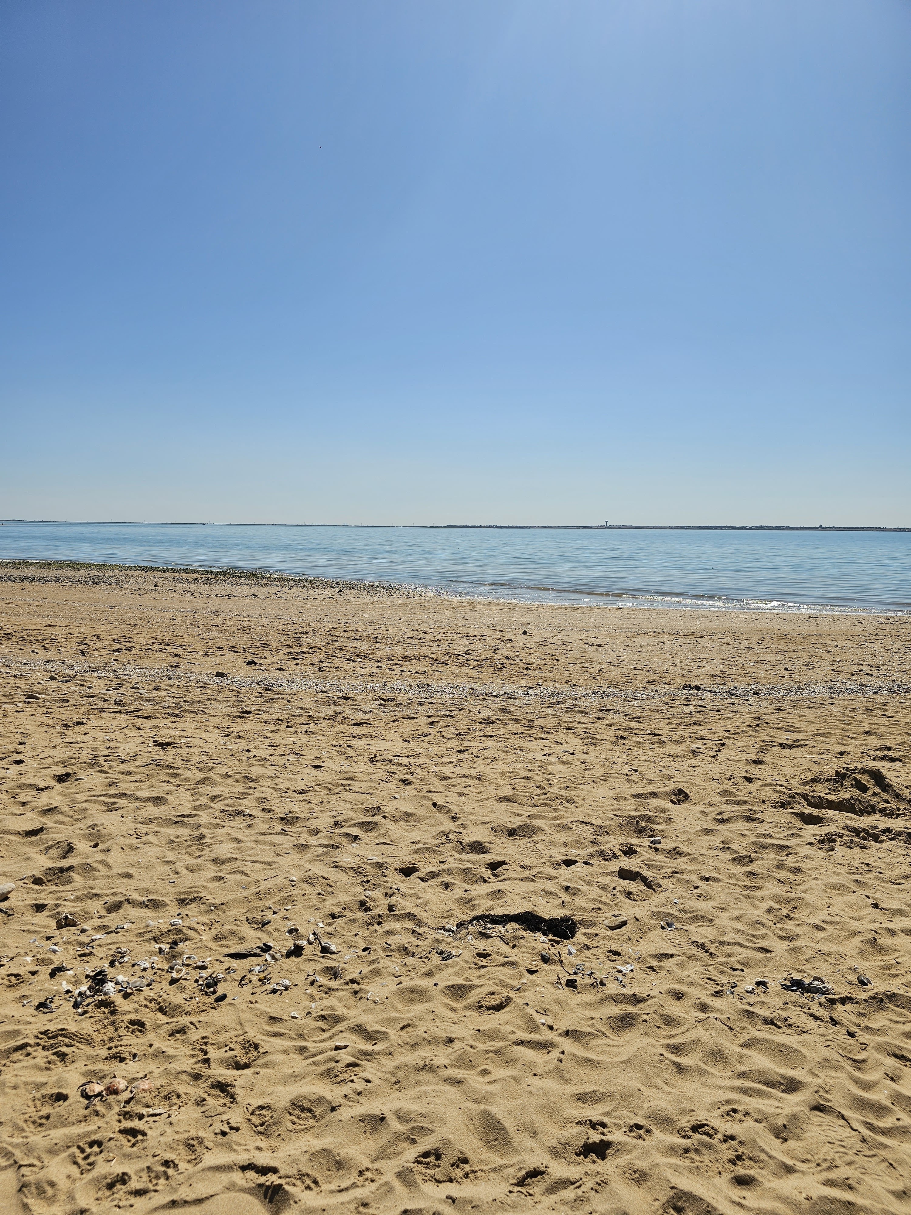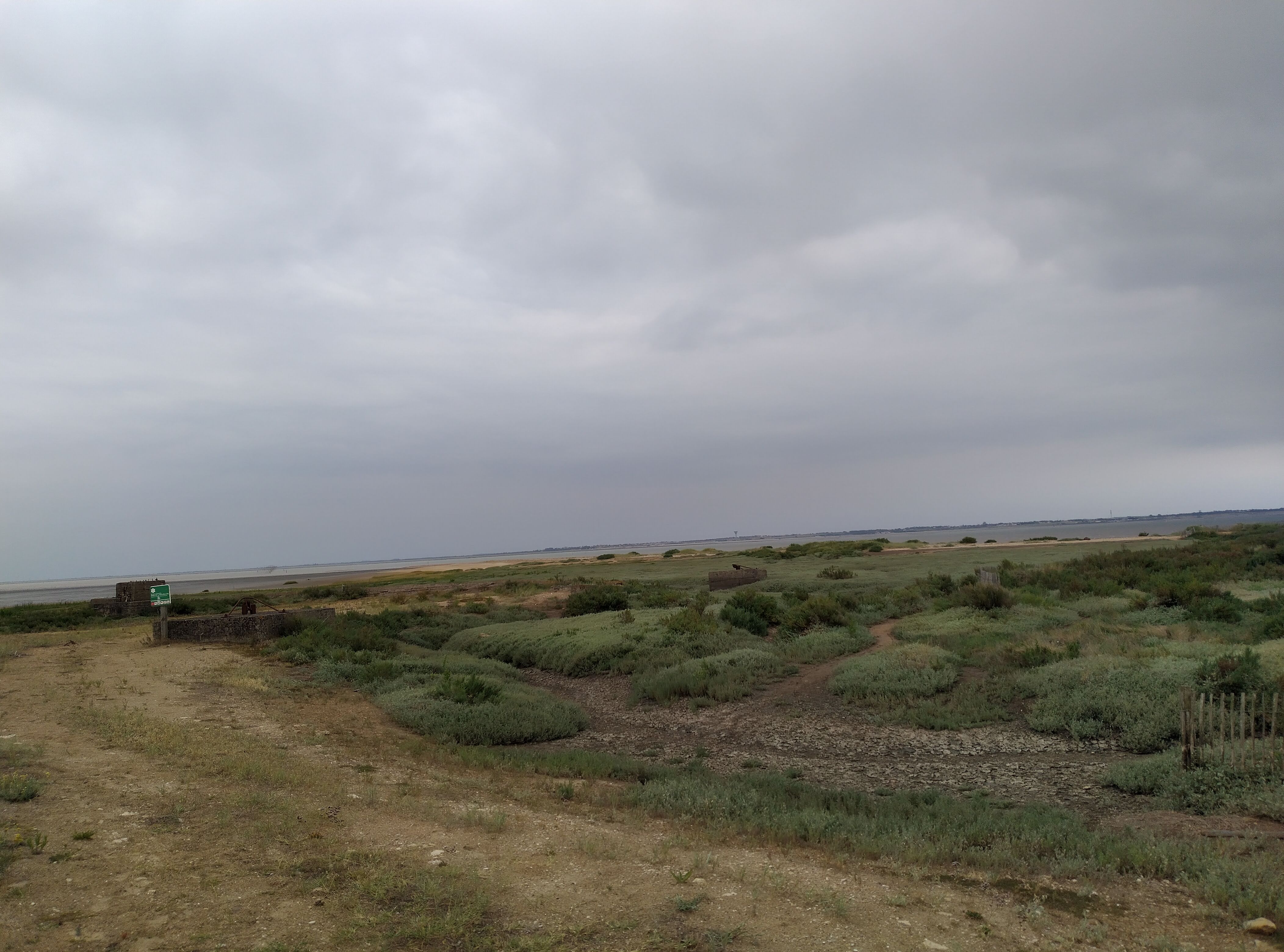 Le bout du monde où presque, plage a perte de vue, vue sur l'île de Ré et la Rochelle par temps clair.