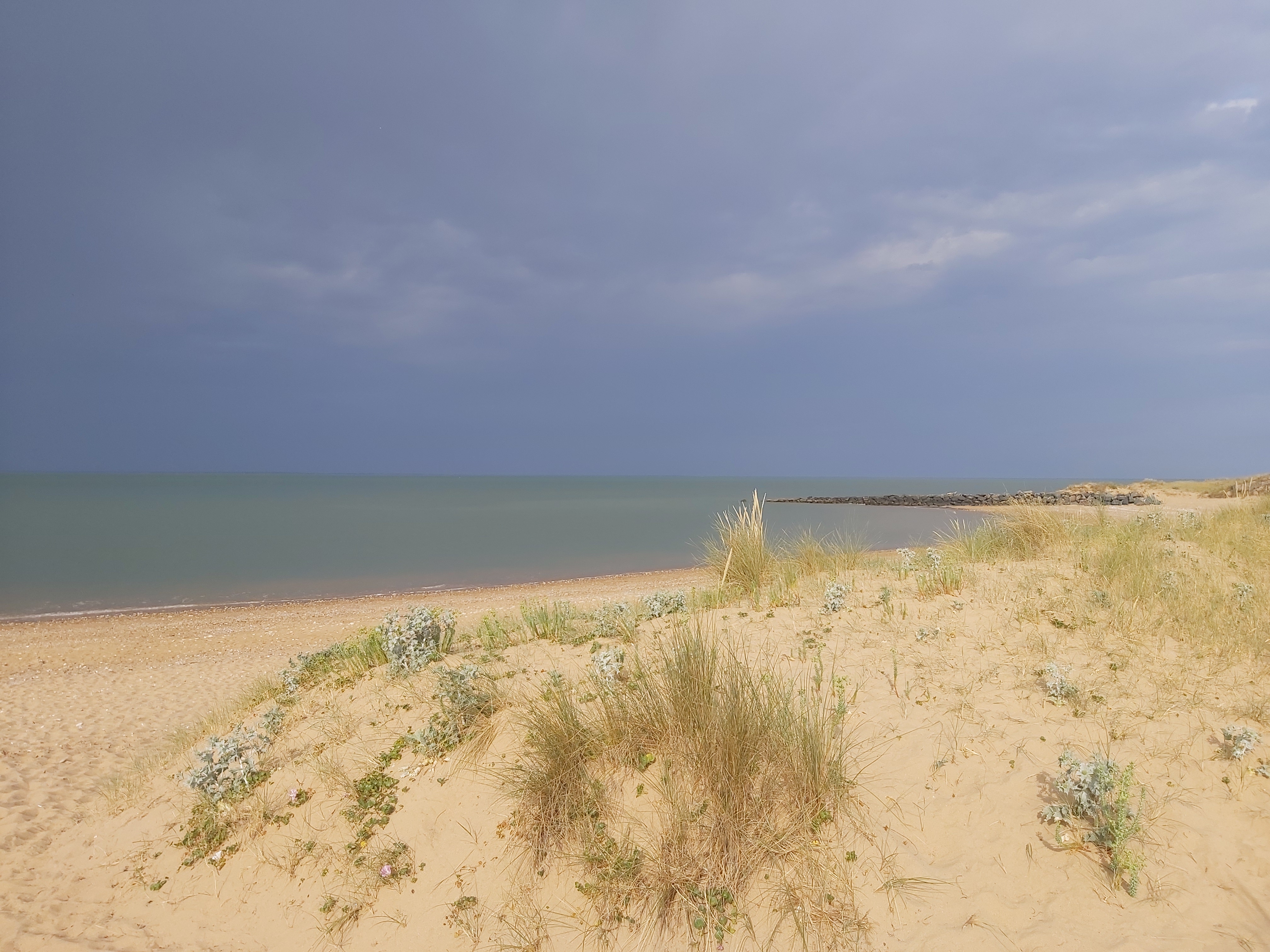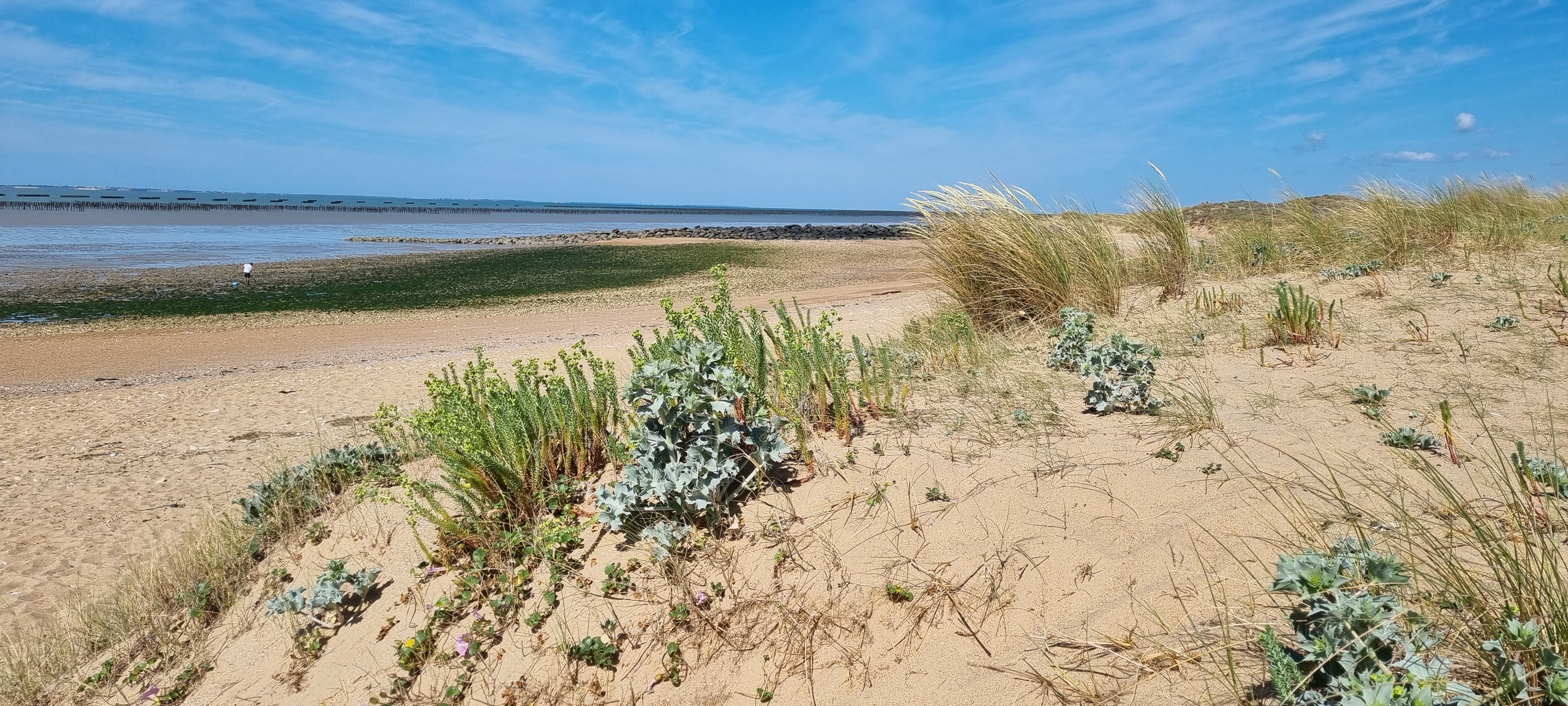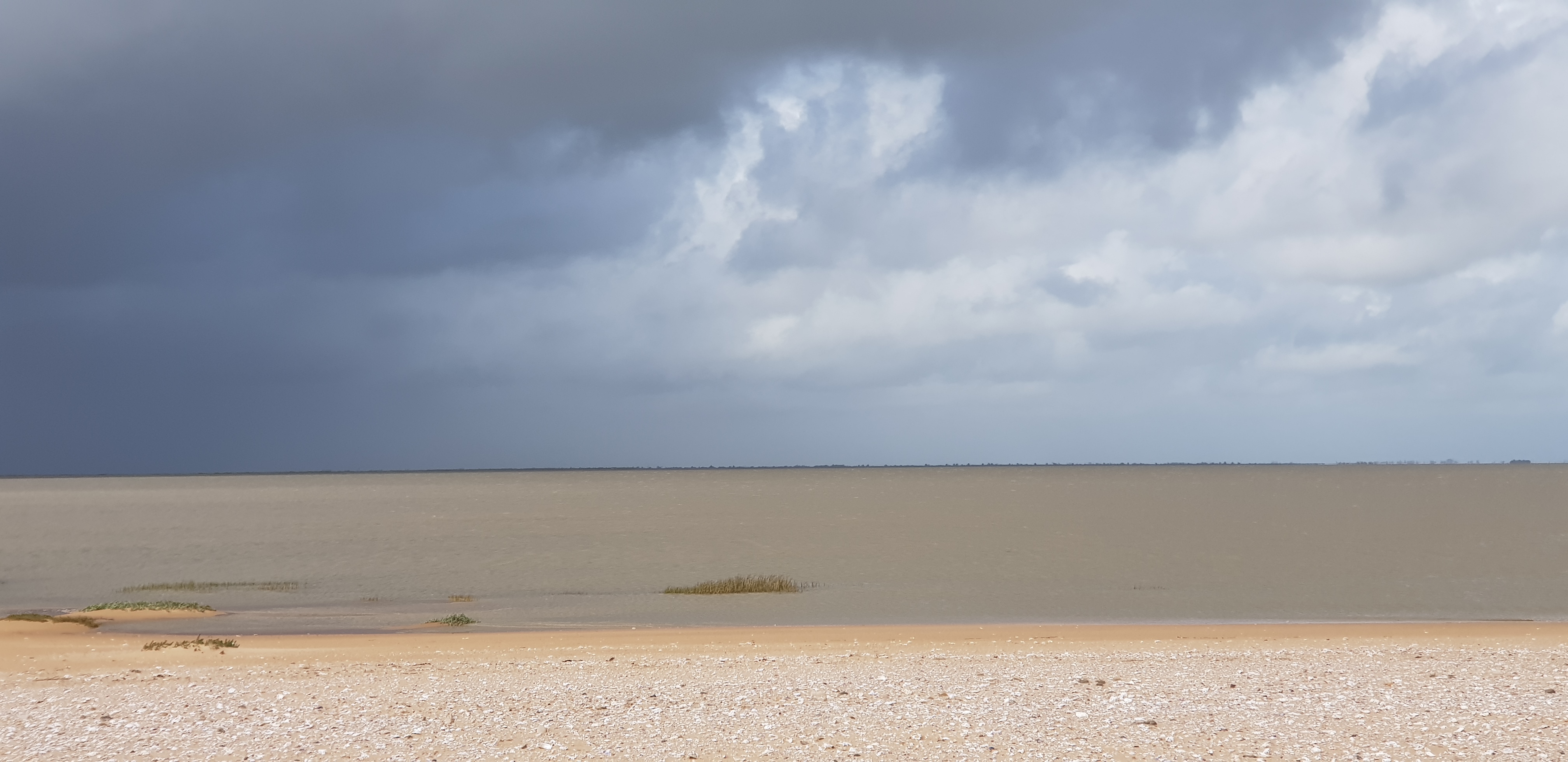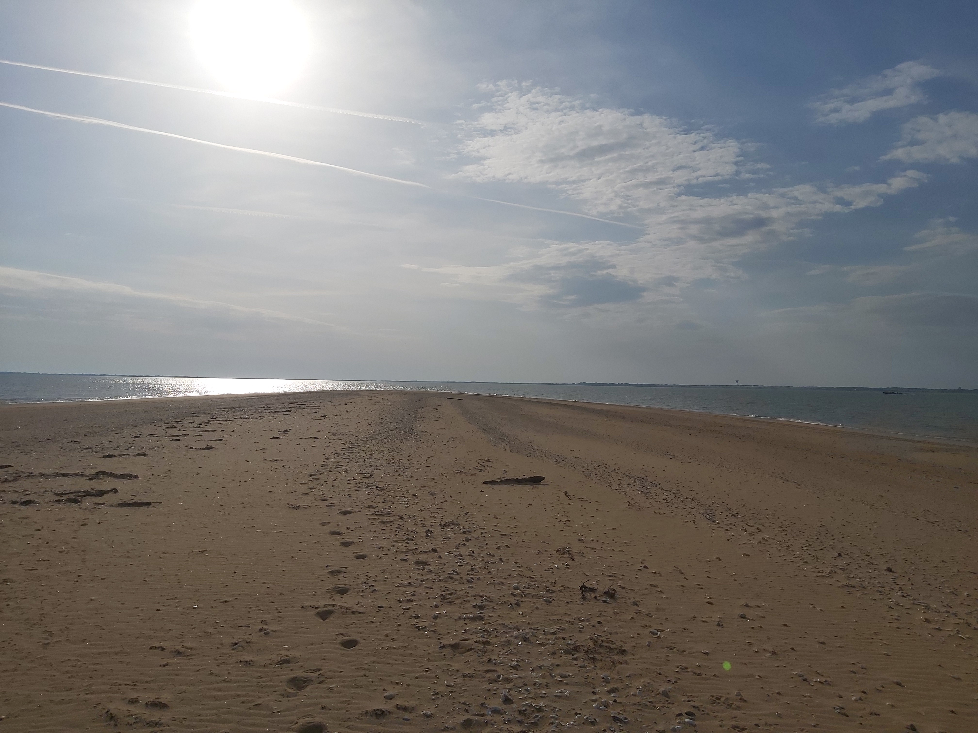 Le bout du monde où presque, plage a perte de vue, vue sur l'île de Ré et la Rochelle par temps clair.