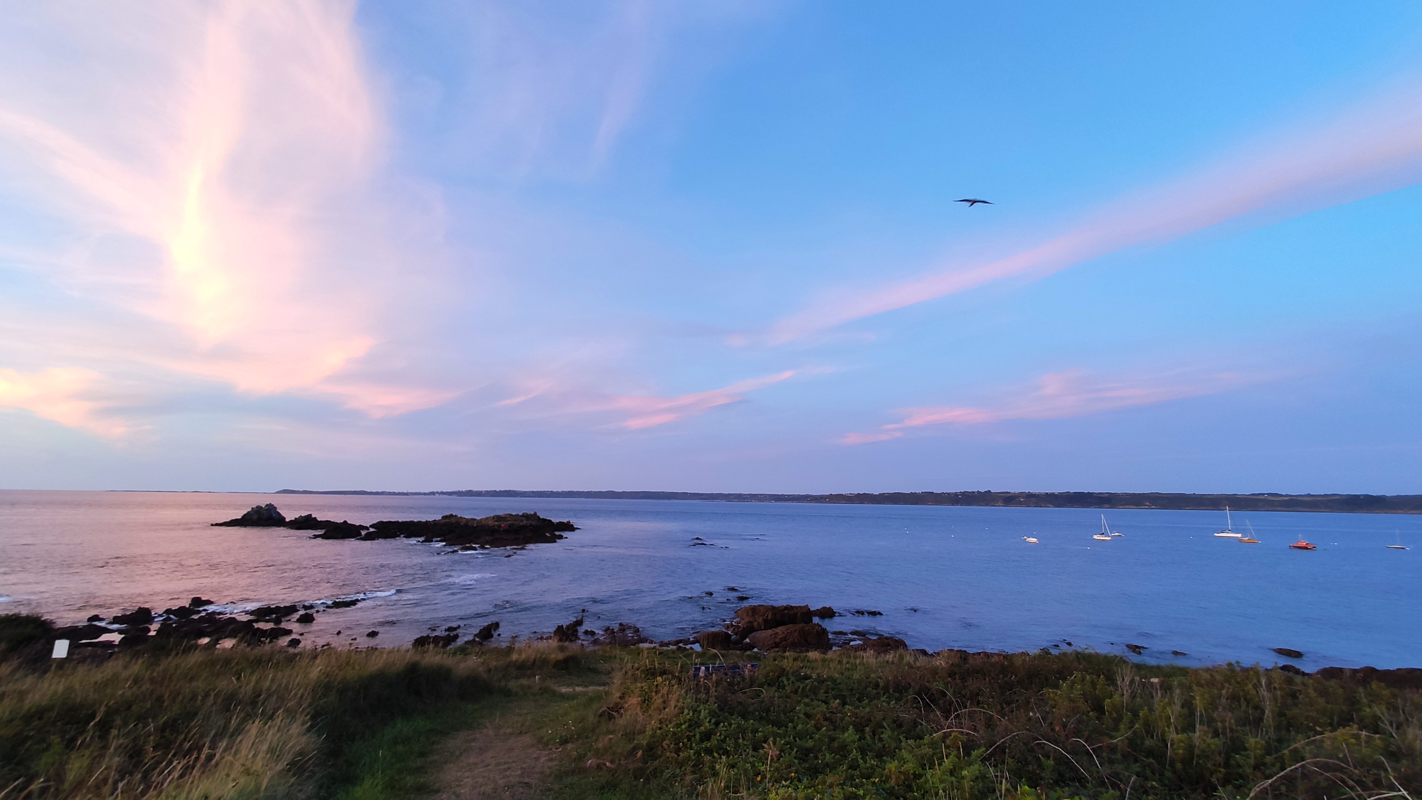 Très jolie point de vue. Locquirec a tout pour plaire , petite ville côtière avec port sentiers de balade , plages , criques, belles maisons d'époque , le coucher du soleil est visible sur la pointe avec des bancs pour s'installer tranquillement.