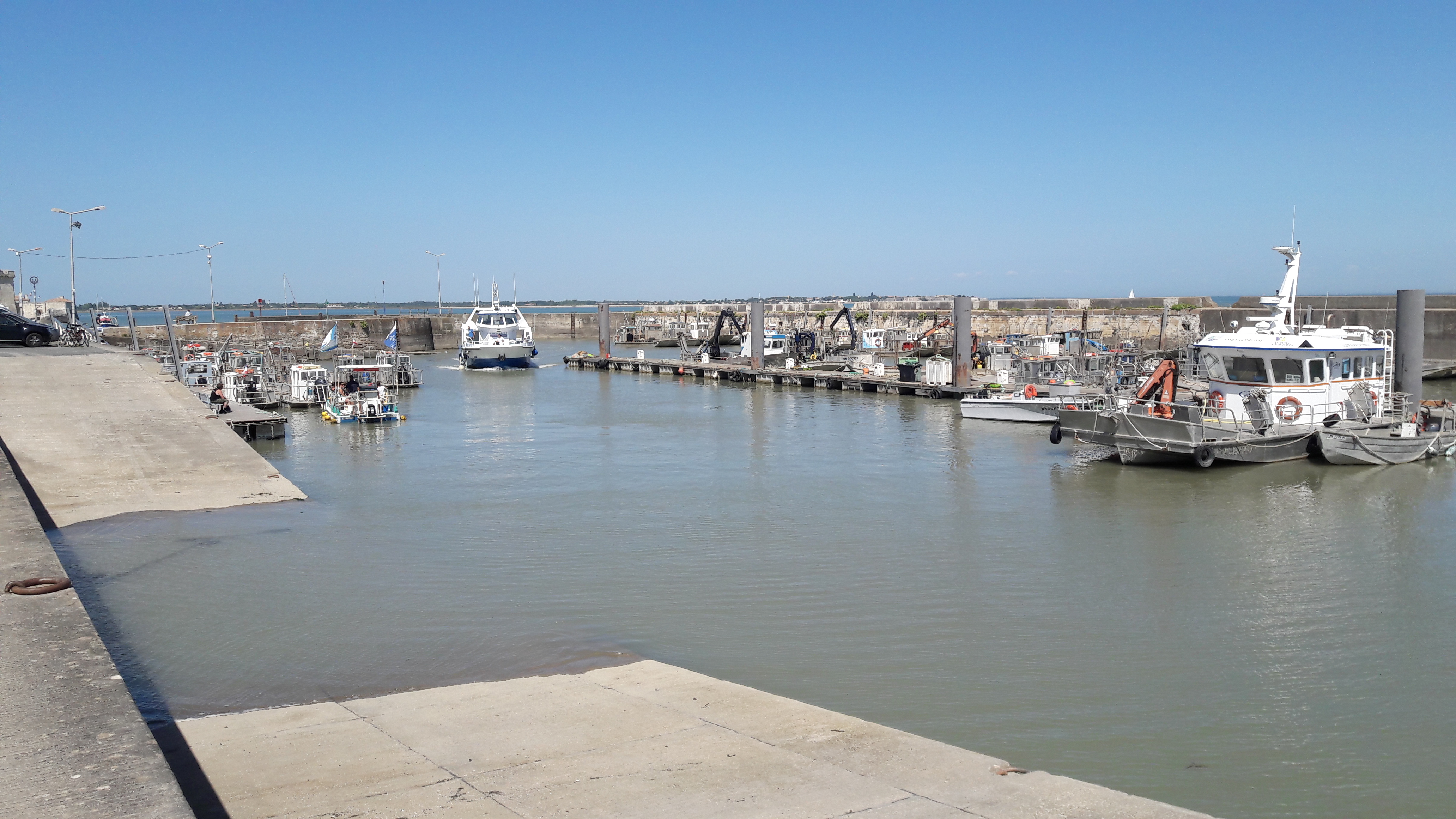 Jolie port professionnel. Balade sympathique. Vue magnifique sur le pont de l ile d oleron. Et sur le Fort louvois.