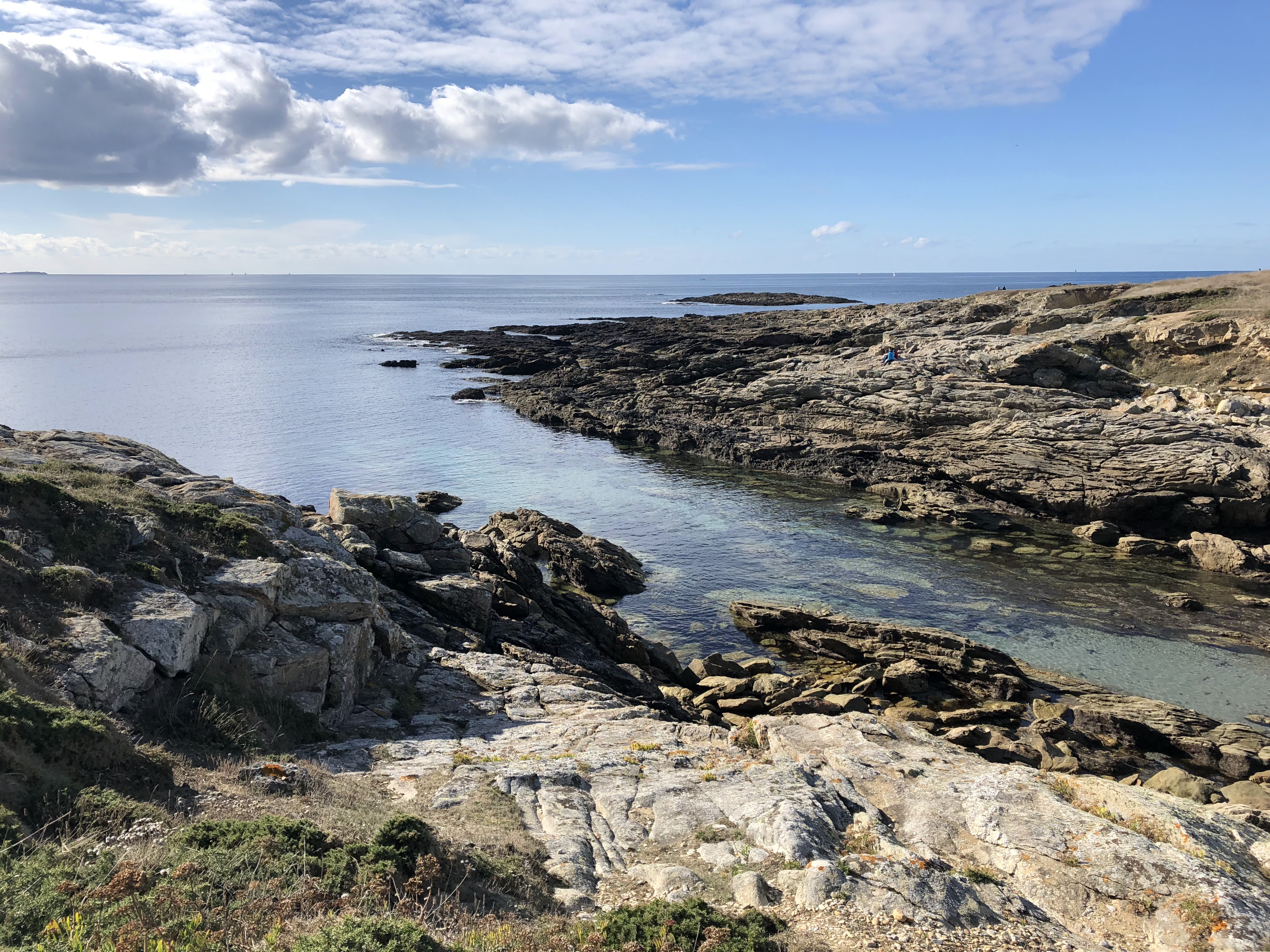 Une partie de la côte sauvage très sculptée par l érosion et la mer l 'eau à des couleurs variantes . Des criques avec de jolies petites plages nous avons vraiment aimés cette partie de la presqu'île
