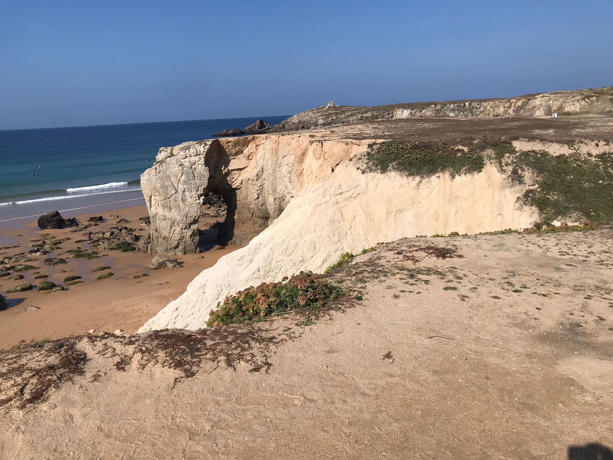 Très joli et pas trop de monde au pied du caillou troué (accès par la plage et en marchant un peu dans l'eau) ni au morceau en hauteur avec la petite ruine